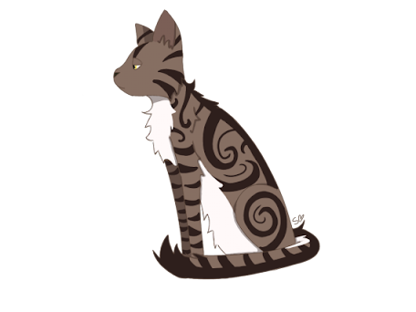 Ogólny opis - Nie zmienił się za dużo od czasów, gdy był jeszcze samotnikiem. Jest średniej wielkości i wysokości, ale za to dostał od losu mocne i umięśnione tylne łapy, dzięki czemu polowanie na drzewach jest dla niego czymś niezwykle łatwym. Do wspinaczki używa też długich i ostrych pazurów, jego największego powodu do dumy. Kolejną rzeczą związaną z łapami są poduszki koloru atramentowego, twarde i przystosowane do życia w lasach i długich spacerów. Łatwiej poluje też dzięki kolorowi futra, pomimo tego, że nudny to naprawdę przydatny! A jaki to kolor? Bury, ale nie z tygrysimi pręgami, tylko klasycznymi. Dzięki temu umaszczeniu łatwiej mu się zamaskować. Ale, ale! Nie może być tak dobrze! Kocur ma na futrze też biel, zajmującą brzuch i klatkę piersiową, ale urywającą się zaraz przed pyskiem. Głowę ma raczej większą, ze średniej długości pyskiem. Na głowie umieszczone ma parę uszu dzięki, którym może usłyszeć zwierzynę i kroki kotów nie zawsze pozytywnie do niego nastawionych. Zaraz pod nimi ma też duże oczy, zwykle nie widać w nich ani radości, ani smutku, są puste bez emocji i żółte. Nos ma mały i brązowy. Ostatnią ważną rzeczą w jego wyglądzie są blizny, wiele blizn.